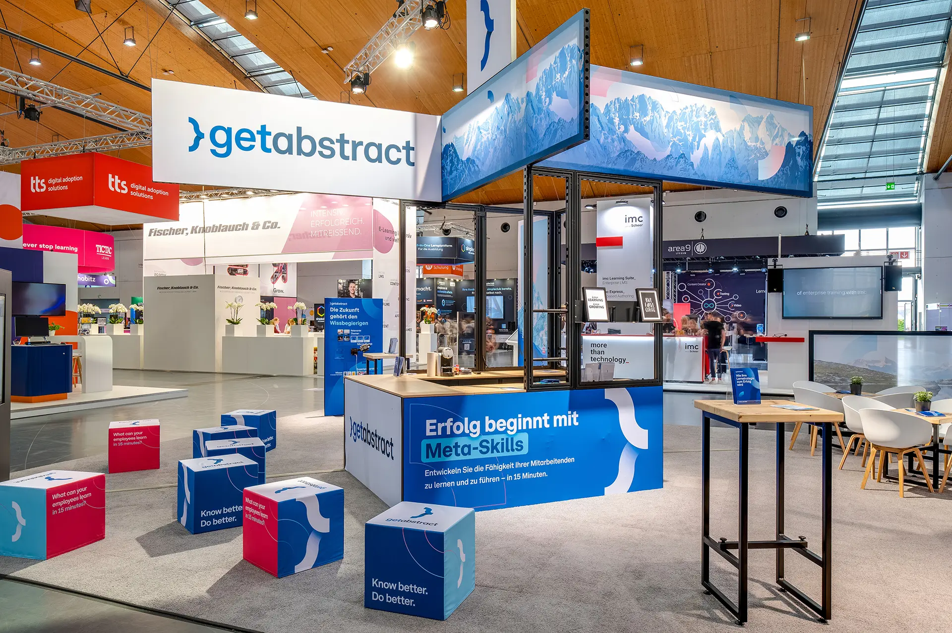 GetAbstract setzte auf ein offenes Standkonzept, das den Zugang von allen Seiten ermöglichte. So gab es keine Barrieren, die Besucher hätten abschrecken können.