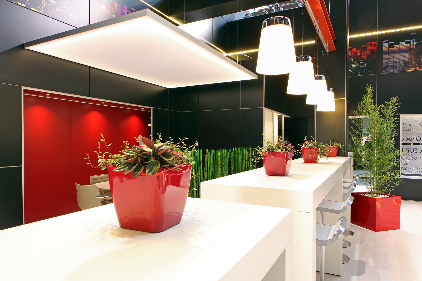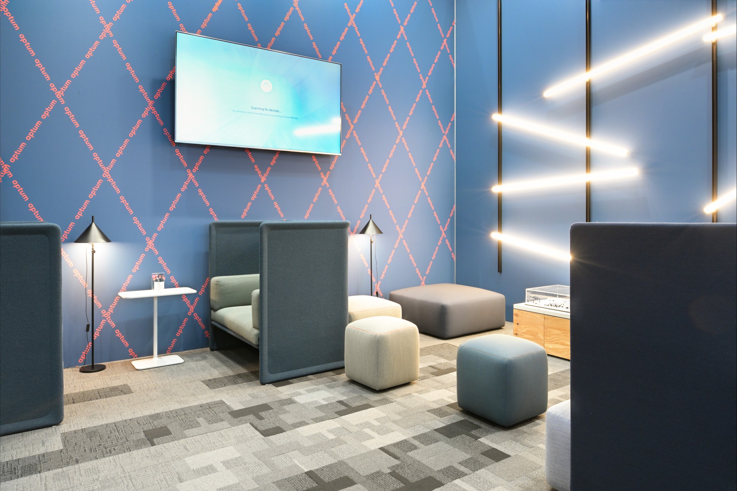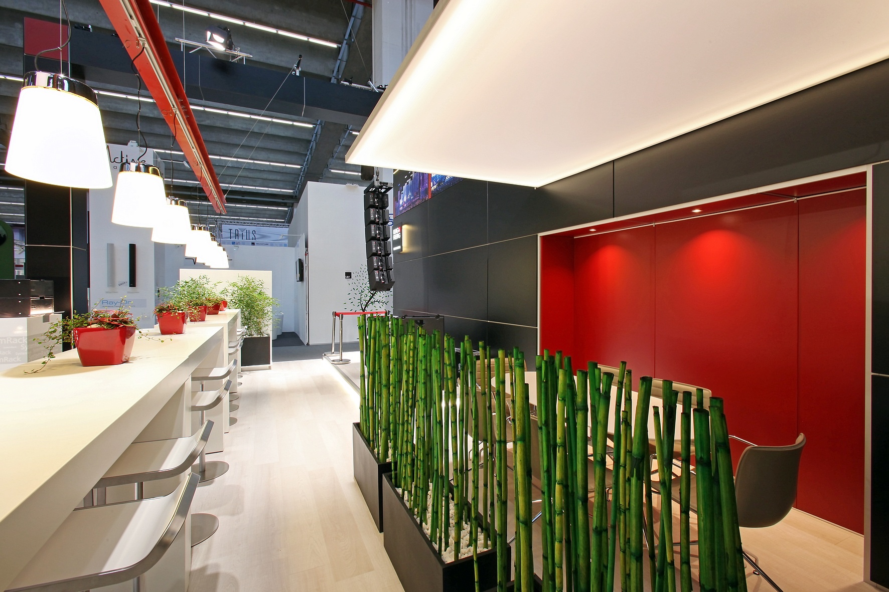Die Akustiklösungen werden mit Beleuchtung, Möbeln und Raumstruktur kombiniert. Das Ergebnis: Ein harmonisches Ganzes, das Ihre Marke optimal präsentiert – ohne dass Sie sich selbst um technische Details wie die Schallisolierung kümmern müssen. So können Sie sich auf die inhaltliche Vorbereitung Ihrer Messe konzentrieren.