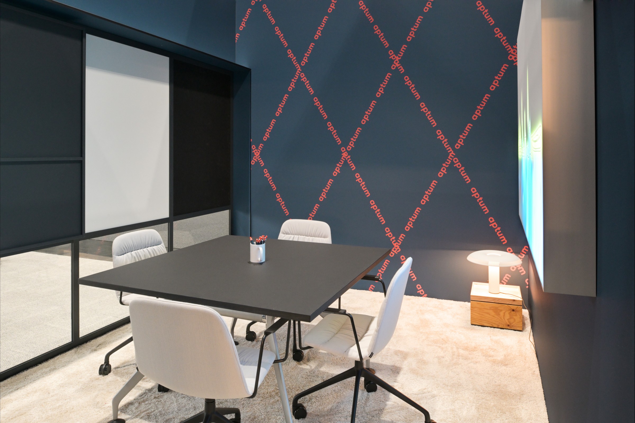 Messestandbeispiel: Ruhige Besprechungsräume bei aptum