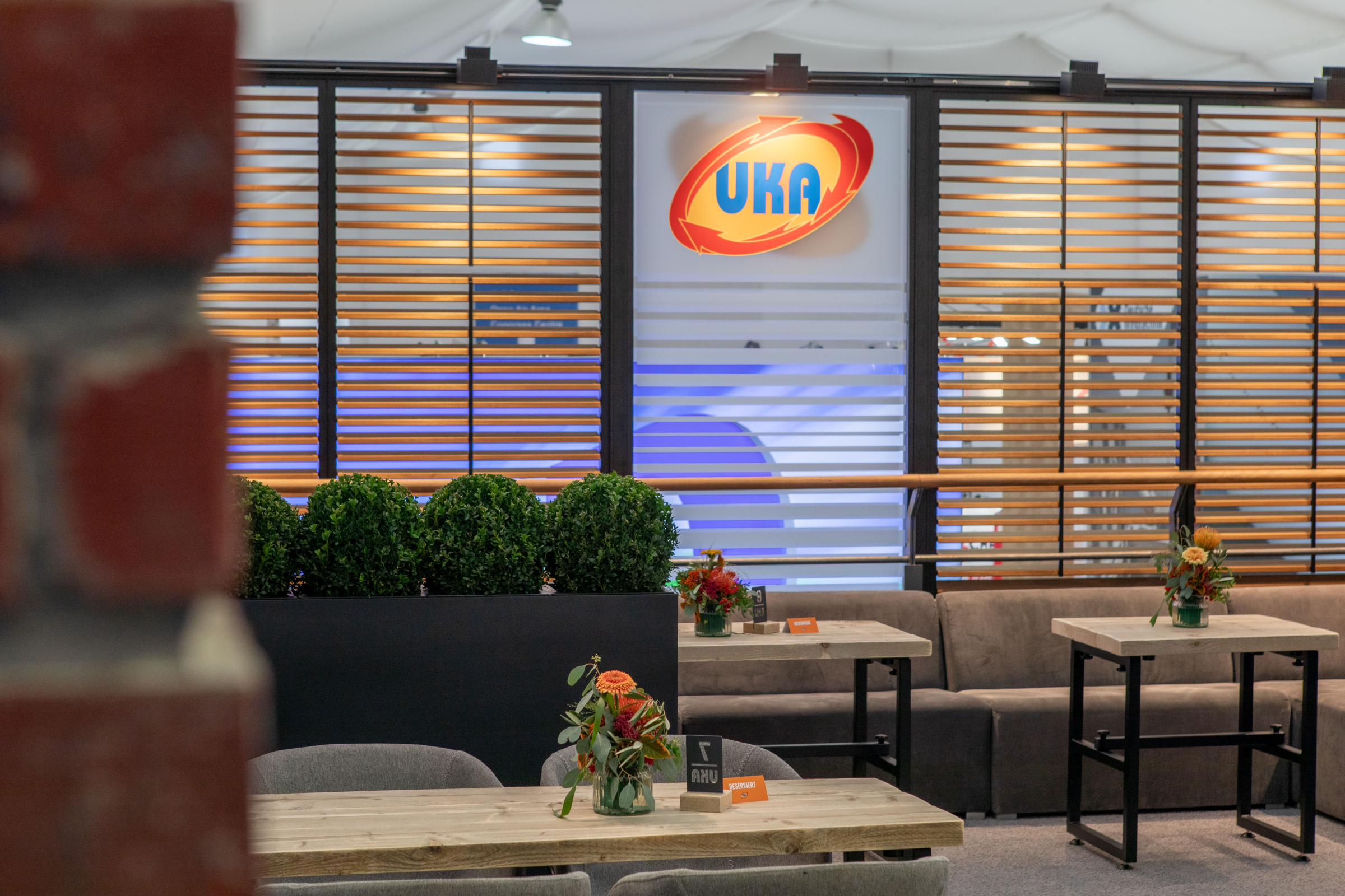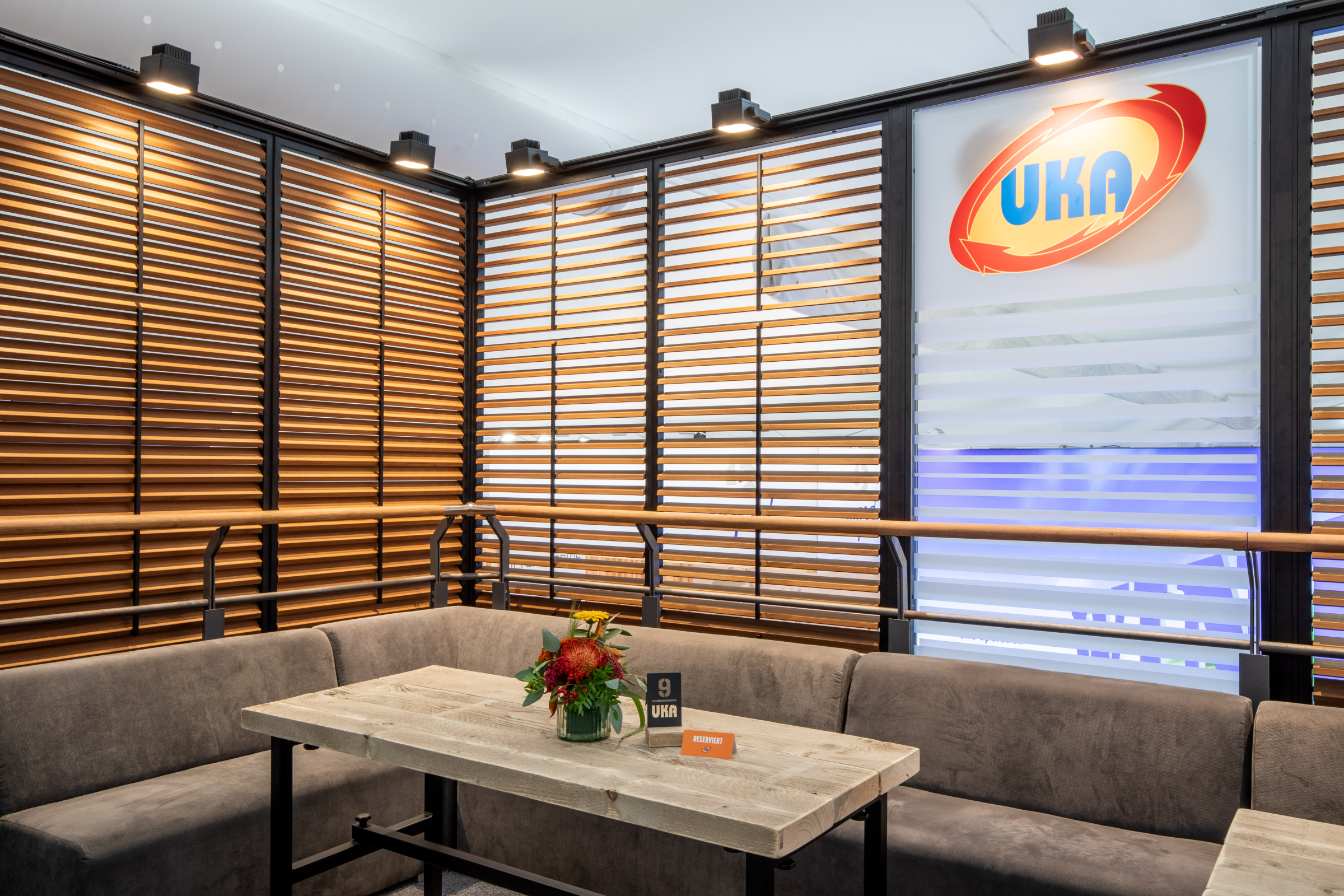 Messestandbeispiel: Mischung aus offenen und abgeschirmten Zonen bei UKA